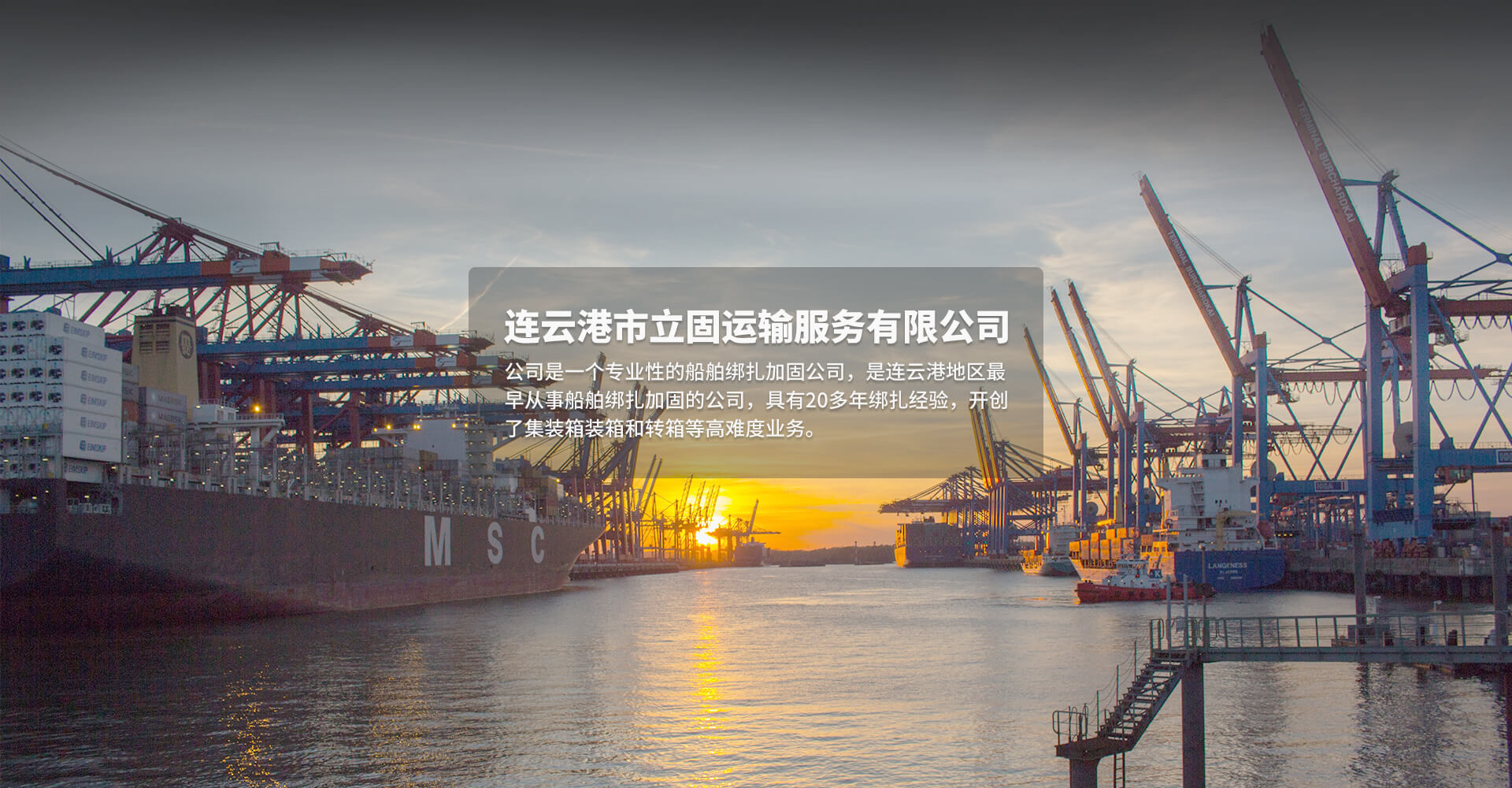 連云港市立固運輸服務有限公司成立于1997年,是集生產、銷售于一體的實體型企業(yè),主要經營范圍包括國內外船舶貨物綁扎加固,船舶物料供應與回收;專業(yè)加工生產各類型的木托盤、木制包裝箱、免熏蒸膠合板木托盤,膠合板木箱等,并為客戶設計定制、安裝服務。